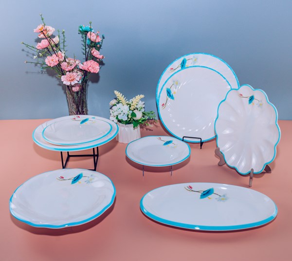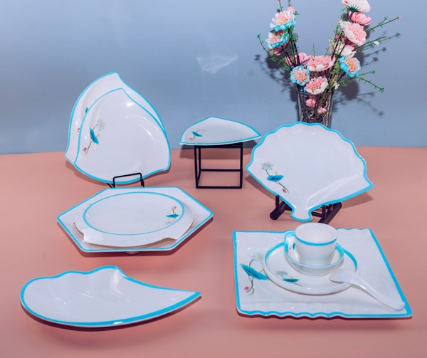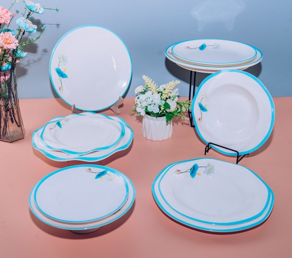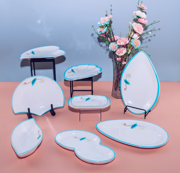 產(chǎn)品器型豐富,花色齊全,產(chǎn)品主要包括杯子、盤(pán)子、碗碟、托盤(pán)、擺臺(tái)套裝等